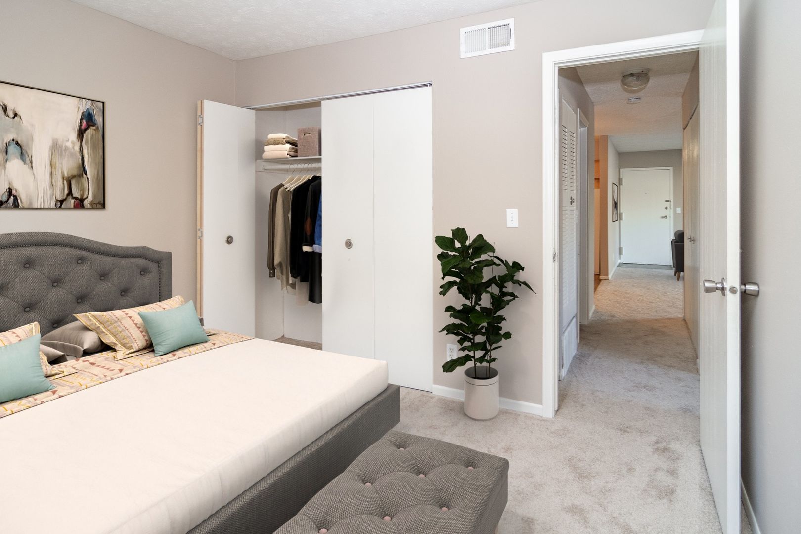 This cozy two-bedroom, one-bathroom apartment is perfect for anyone looking for a comfortable and convenient living space. The updated kitchen cabinets and cozy balcony provide an updated feel, while still allowing you to add your own personal touch to make it uniquely yours. Spend your mornings sipping coffee on the balcony or cook something up in your full size kitchen. The possibilities are endless! Also, don’t miss out on utilizing the den or ample amount of closet space throughout the unit this floor plan has to offer.