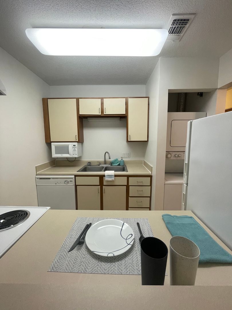 Living spaces boast fully-equipped kitchens, individual patio and garden, stackable washers and dryers and access to Cox Quick-Connect Internet.